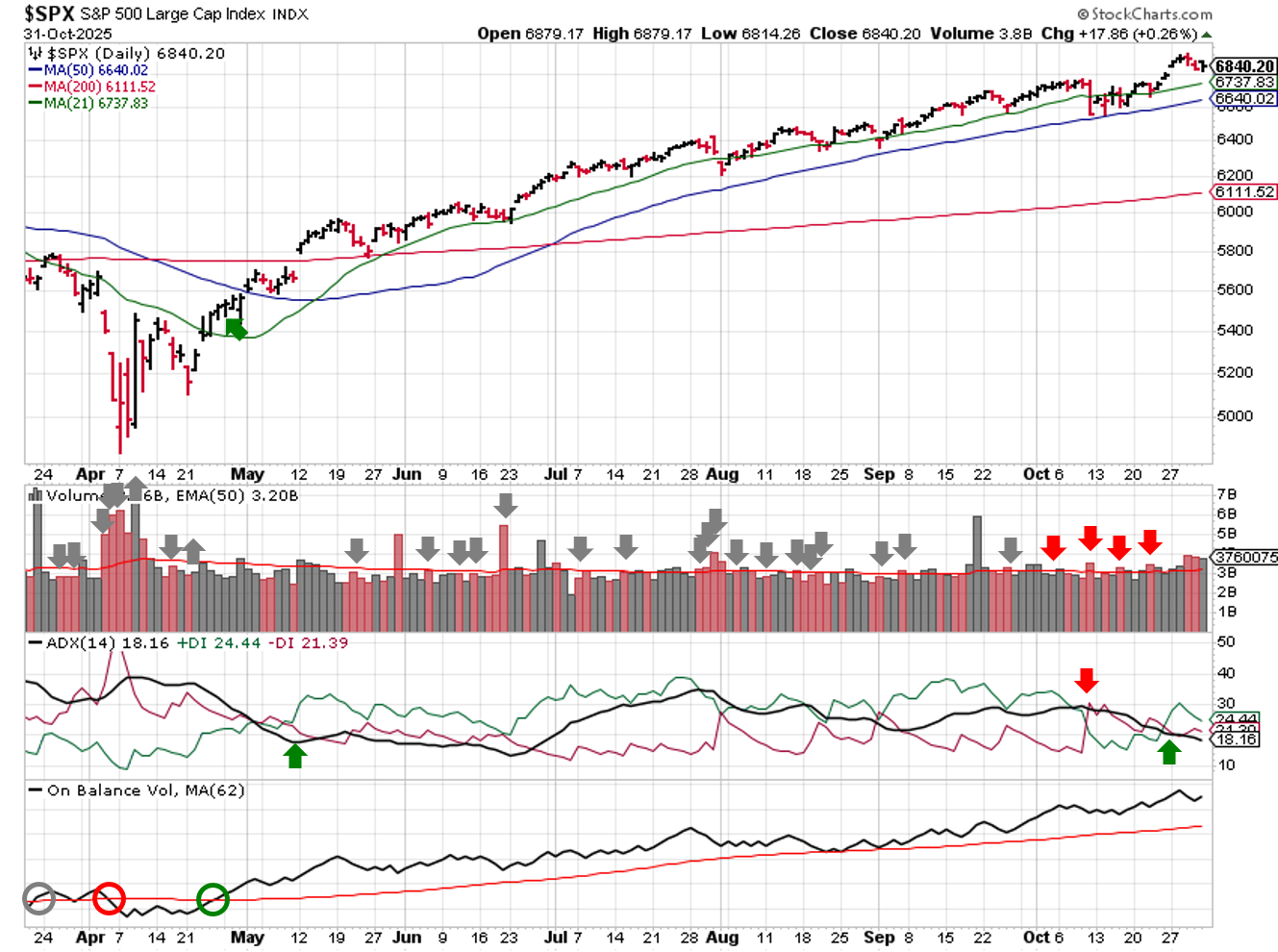 All three indicators show bullish price action. The index saw elevated selling on Thursday and Friday, but neither session met the criteria for a distribution day.