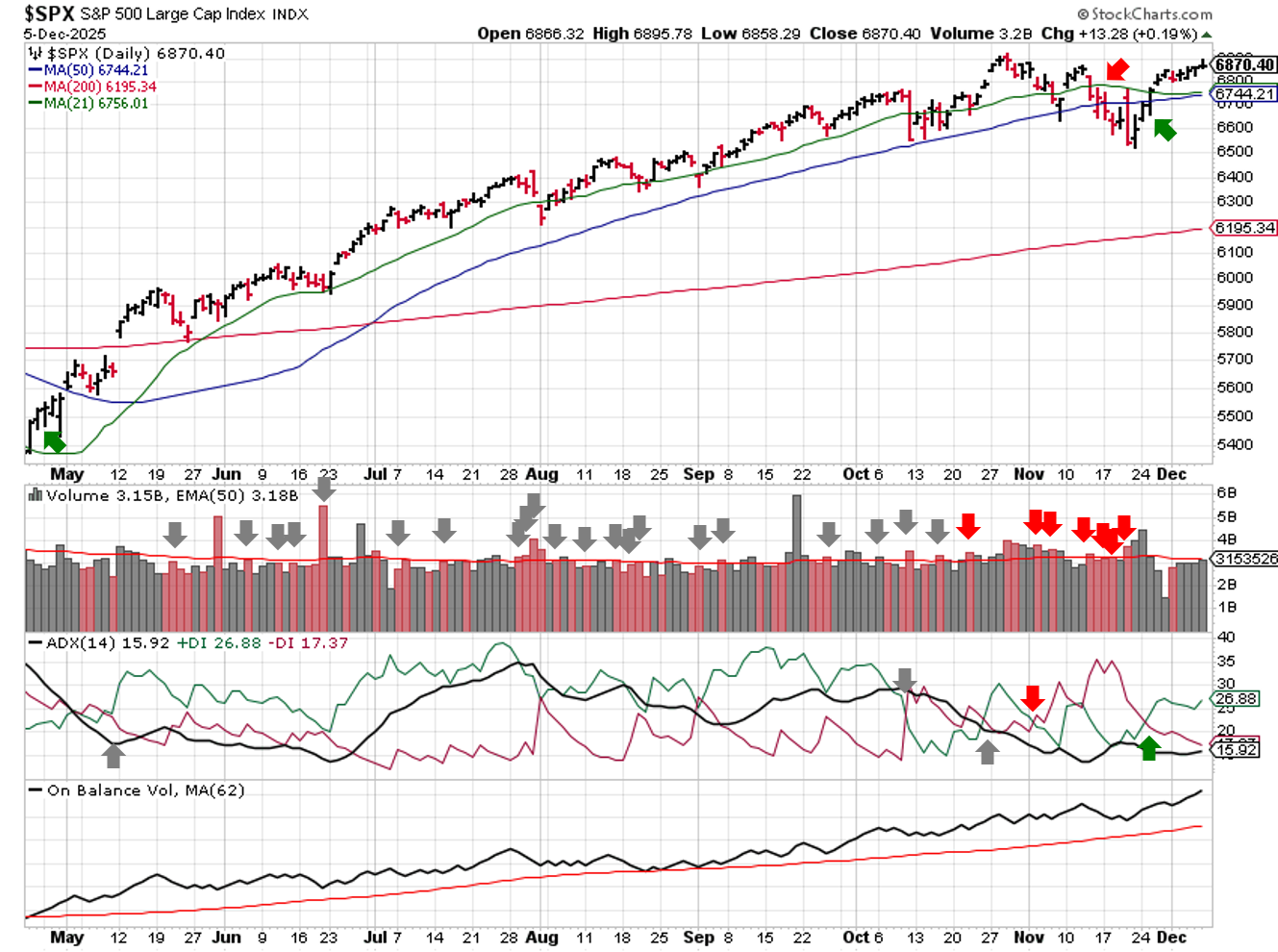 Trading volume was muted last week; no surprise for the start of the holiday season. But that means we're still waiting for institutional activity to confirm a new rally.
