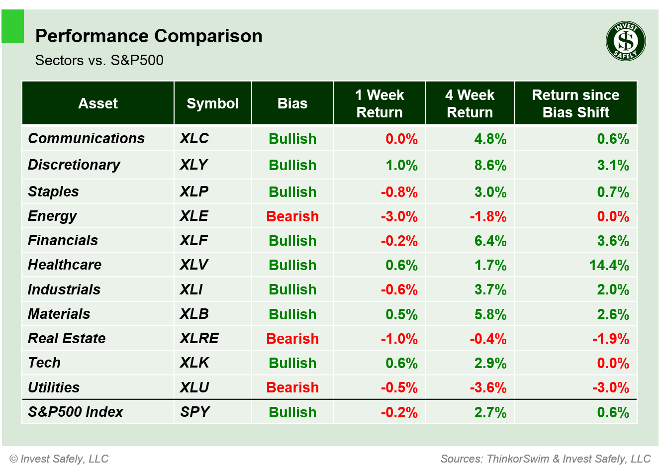 Consumer Discretionary ( $XLY ) outperformed last week, one of a handful of sectors to end the week in the green. Energy ( $XLE ) underperformed significantly, and also dropped back to bearish bias.